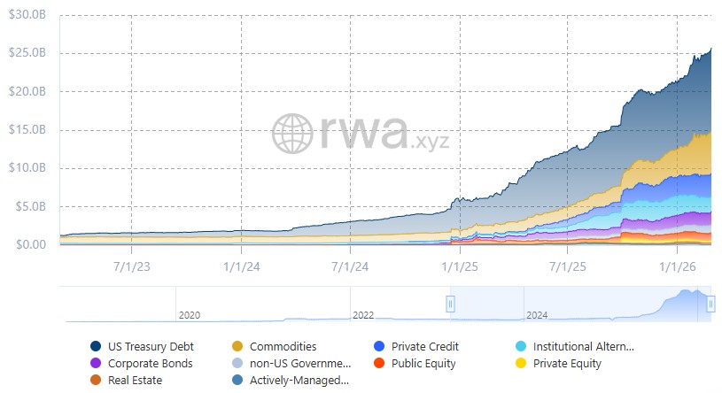 這兩點我認為透過區塊鏈技術可以大幅改善並加速AGI進展~ 美國天才法案的通過讓穩定幣正式合規,直接橋接了傳統銀行與幣圈,從去年RWA賽道的份額增長(如下圖)就可以知道華爾街這幫人不是玩玩的,未來的金融體系可能會逐步捨棄舊體制與技術,透過區塊鏈達成無時空限制的收付款&轉帳、24/7不間斷的交易結算,AI Agent不需要透過KYC等繁複的身分驗證流程就可以24小時進行金融操作(應該也會有對應的Agent鏈上身分協議誕生),資金來源可能可以透過算力挖礦而得,或是找尋無效市場的套利機會等(早期波克夏也是透過各國無效市場累積財富,這議題滿有趣的XD)。區塊鏈的不可竄改性則可以記錄Agent記憶以及行為,任何錯誤的決定(甚至犯罪事實)都可以被溯源,而不是全部丟鍋給user,明確的反省機制也會讓AI形成自我修正的正循環,之後說不定會有屬於記憶的區塊鏈,以去中心化的訓練方式誕生出通用模型。對於人類來說,一切的金融操作都沒有改變,只是底層技術換成了區塊鏈,與AI之間也有明確的責任劃分,與之共生共存,或輾轉成為另種Agent。